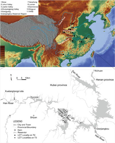 Handaxe-bearing sites in China are currently known to occur in a number of alluvial basins, the best known being Dingcun, Bose and Luonan. Researchers documented the Danjiangkou Reservoir Region (DRR) as another major area for large cutting tools (LCTs), located in central China on the southeastern edge of the Qinling Mountains. Large cutting tools are preserved in three terraces of the Han and Dan Rivers in Hubei and Henan Provinces, with dates from ca. 0.8 Ma (millions of years ago) (Terrace 4) to the first half of the Middle Pleistocene (Terrace 3), and possibly to the Late Pleistocene (Terrace 2). Regional environments during the Middle Pleistocene were relatively warm, humid and stable. Despite the poor quality of raw materials (predominantly quartz phyllite and trachyte for the LCTs), good examples of both handaxes and cleavers are present, plus two types of picks. The LCT technology is compared and contrasted with other Asian industries and with the Acheulean. Overall the DRR LCTs show both technological and morphological similarities with Acheulean LCTs, with some differences that are mainly attributed to raw material properties, subsistence ecology, and ‘cultural drift.’