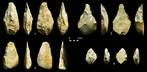 with short chisel-end distal; 4. handaxe made on a quartz phyllite flake. (Image by LI Chaorong)